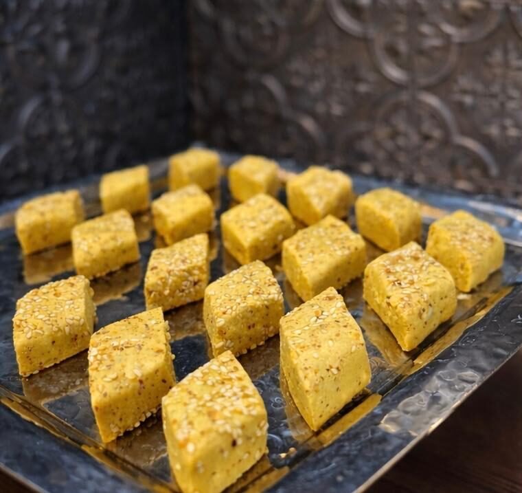 Ingredients: Chickpea flour, Sugar, Butter, olive oil, Sesame, Almonds, Hazelnuts, flour, Corn Starch