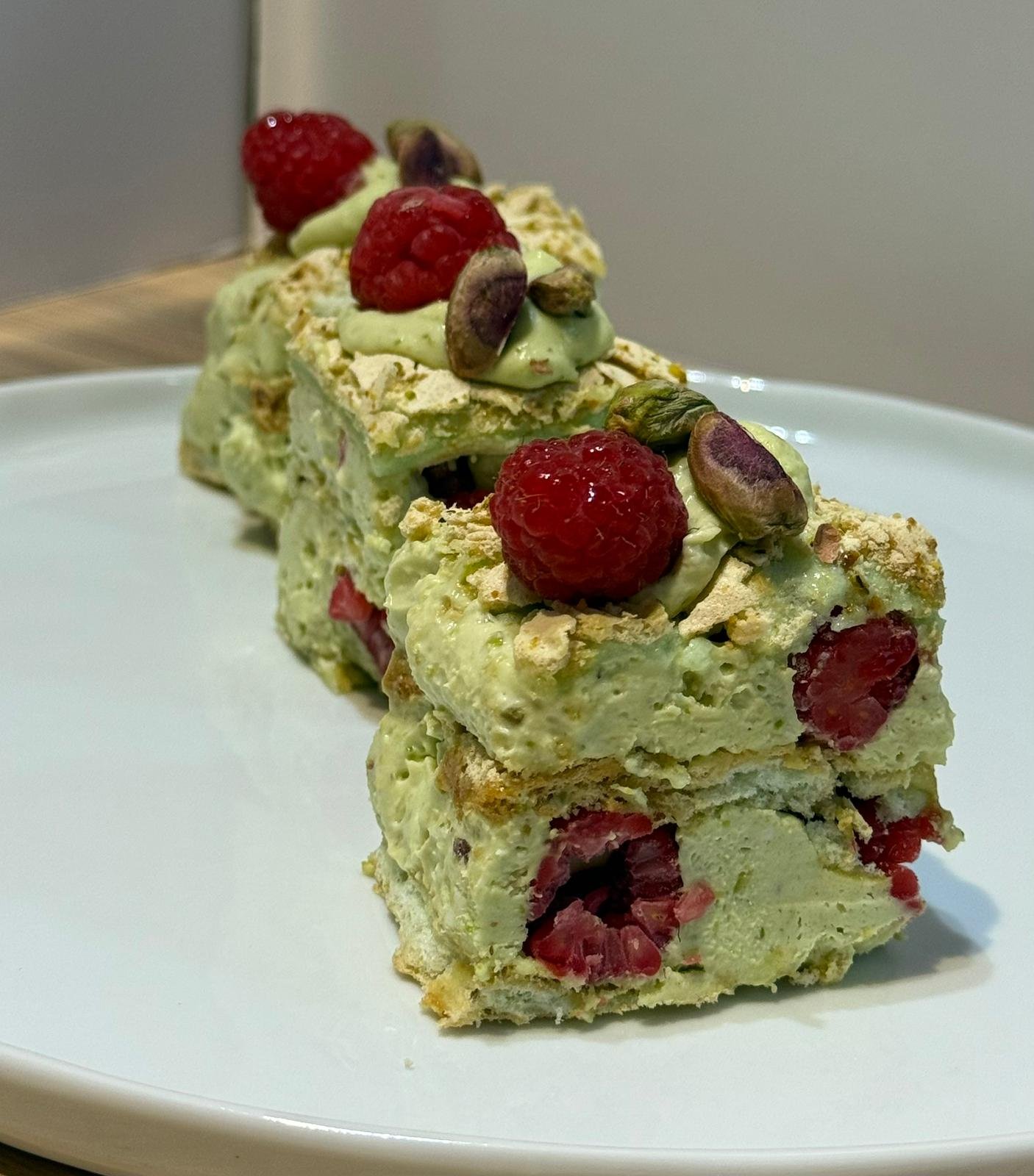 Ingredients:White Eggs, Sugar, Cream Cheese, Corn starch, vanilla, Whipped Cream, [You Can Choose Any Fruit You Want], Red Fruits, Mango, Pistachio, Chocolate